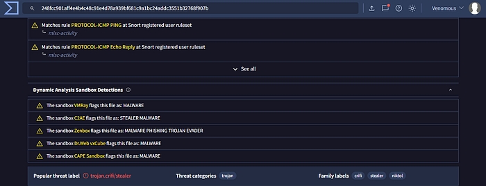 1. Categorizing malware allows for a quicker and easier understanding of the malware, aiding in understanding its distinct behaviors and attack vectors. What’s the identified malware’s category?