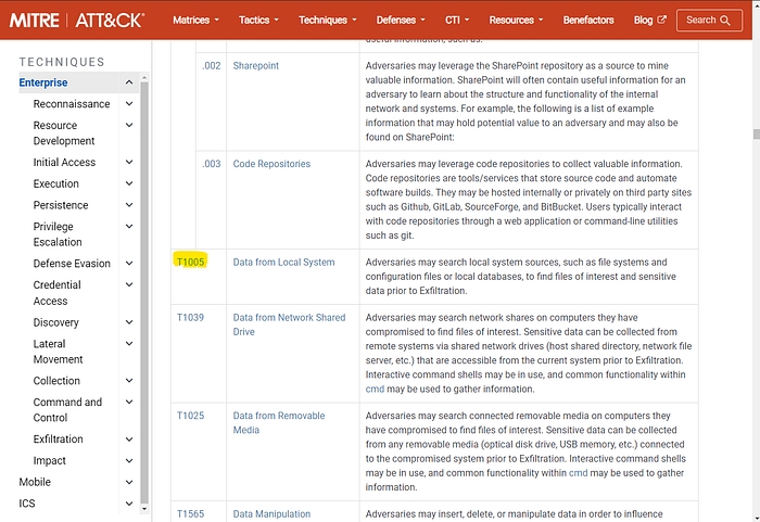 4. Understanding the techniques used by malware helps in strategic security planning. What is the MITRE ATT&CK technique ID for the malware’s data collection from the system before exfiltration?