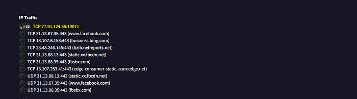 6. Once the malicious IP addresses are identified, network security devices such as firewalls can be configured to block traffic to and from these addresses. Can you provide the IP address and destination port the malware communicates with?