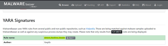 7. YARA rules are designed to identify specific malware patterns and behaviors. What’s the name of the YARA rule created by “Varp0s” that detects the identified malware?